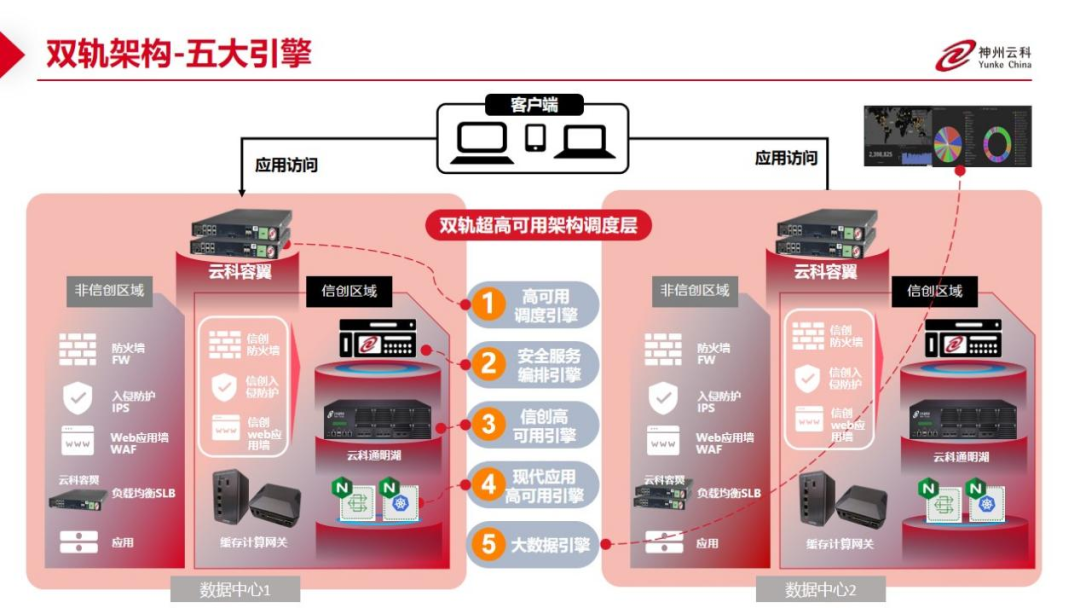 数据中心架构在自主创新的过程中分解为现有架构的非信创区和信创区的两个业务区域,在每个数据中心分为信创区和非信创区后,在两个区域之间的跨区跨域协同方法,BB贝博艾弗森通过5大引擎实现多层次的应用可持续性实践。
